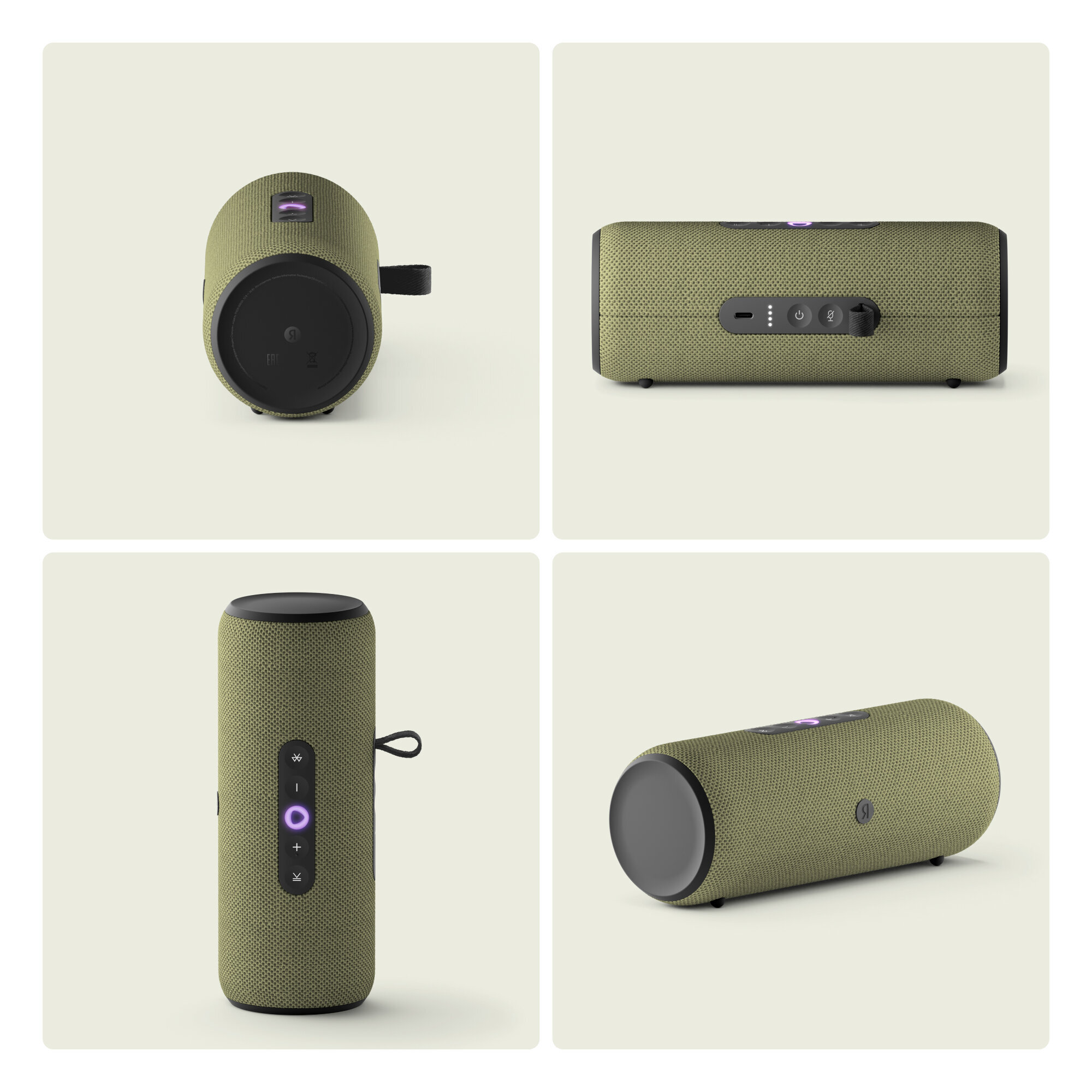 Дизайн, созвучный с природой, и ремешок в комплекте: Удобно держать в руке, ставить вертикально или горизонтально, а с помощью ремешка можно вешать колонку на рюкзак.