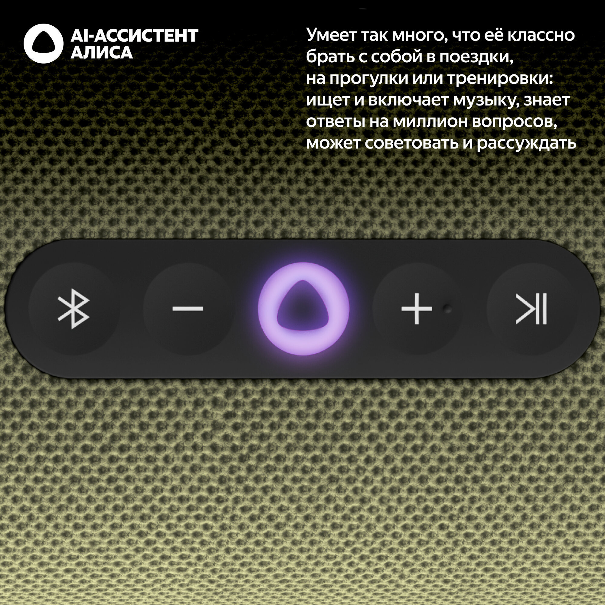 Мощное звучание и AI-ассистент Алиса: Управляйте любимой музыкой голосом и общайтесь с Алисой по Wi-Fi и Bluetooth.