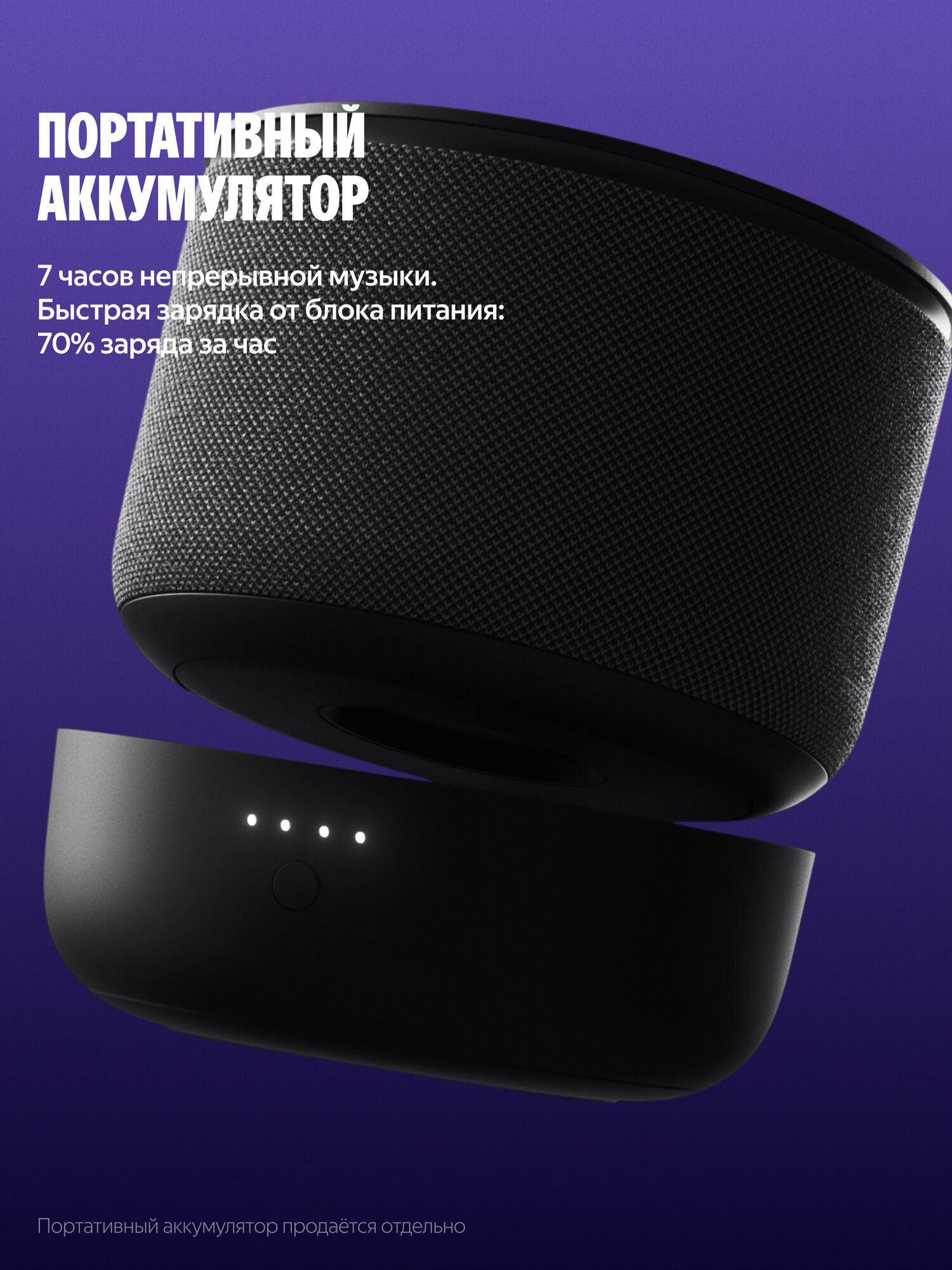Портативный аккумулятор для Станции Мини 3 Про позволяет переносить умную колонку из комнаты в комнату и брать её с собой куда угодно, чтобы не расставаться с Алисой и любимой музыкой.